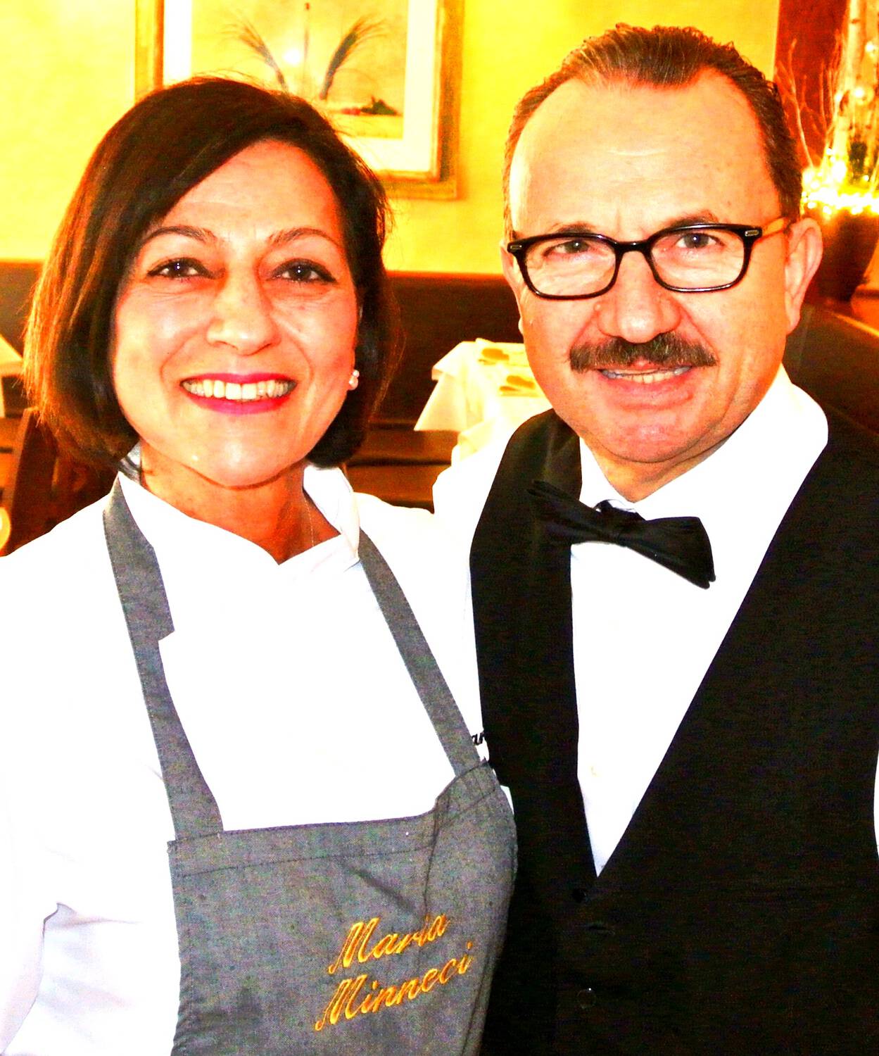 Bis heute immer im Vordergrund: Frische und Qualität der zubereiteten Speisen. In den nächsten Monaten und im nächsten Jahr kann Gianni Minneci und seine Frau Maria (unser Foto links und rechts) gleich mehrfach feiern: Zum Beispiel wurde das "La Palma" zum Spitzen-Restaurant in Fürth erklärt, vor 15 Jahren wurde das Restaurant in Fürth im Rahmen der „Franken kulinarisch“-Preisverleihungen der Abendzeitung zum „Fränkischen Spitzen-Italiener“ erklärt und vom damaligen Ernährungsminister Werner Schnappauf ausgezeichnet. Die täglich neu gestaltete „La Palma“-Speisekarte reicht von "Vitllo Tonnato" und  „Gebratenen Garnelen  in Knoblauchöl "pikant" mit Vulkanspargel" über „Wolfsbarschfilets vom Grill mit Kräuteröl, Tagesgemüse und Kartoffeln“ und „Gratinierte Kabeljau-Loins auf Fenchel in Safran-Sauce mit Gemüse Risotto" bis zur „Maishähnchenbrust Supreme mit Speckmantel und Kastanien in Apfel-Sauce, Tagegemüse und Kartoffeln". Als Nachspeise empfehlen sich neun Positionen - vom Tiramisu über "Tartufo al Cioccolato nero" bis "Formaggio Misto". Ein bißchen Zeit sollte sich jeder Gast nehmen: Allein das Studium der Getränke-Karte (viele excellente italienische Weine) ist eine genussvolle Vorbereitung auf ein Menü! Gianni Minneci äußert sich kreativ: „Mein größter Wunsch ist es, dass sich jeder Gast bei uns wie in einem Kurzurlaub in Italien fühlt. Die Zufriedenheit unserer Gäste ist unser Anspruch!"