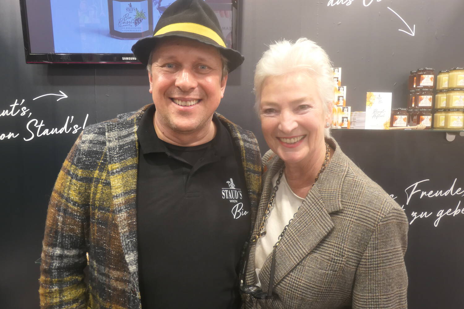 Die Geschäftsführer Stefan Schauer (unser Foto links, mit Pressebüro-Fotografin Gabriele Loy) und Jürgen Hagenauer können dabei auf jahrzehntelange Erfahrung im Unternehmen zurückgreifen. Sie widmen sich ihrer Aufgabe mit Innovationsgeist, Herzblut und immer auch ein bisserl Schmäh: Also ganz in der Tradition dieses zutiefst in Wien verankerten Unternehmens. Und immer mehr Prominenz liebt Staud´s Spezialitäten - unser Foto unten zeigt beispielsweise Kabarettist Volker Heißmann bei Hansi Staud in Wien!