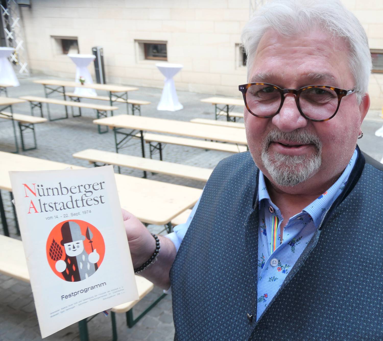Moderator und Humorist Egon Helmhagen erinnerte an die Ursprünge der wunderbaren Herbstveranstaltung in Nürnbergs Altstadt. Begonnen hat die Geschichte des Altstadtfests nach einer Idee des legendären Stadtrates Horst Volk - er hatte erste Vorschläge für diese Veranstaltung. Weil die Altstadt zwar gut besucht war, es aber keine traditionelle Kirchweih gab wie in den anderen Stadtteilen üblich, sollte ein Vergnügen für Nürnbergs Innenstadt entstehen. Volk erstellte ein Sieben-Tage-Programm und erzählte jedem davon, aber der Initiator verfügte nicht über die finanziellen Mittel und so verschwand das Projekt vorerst wieder in der Schublade. Doch Verkehrsdirektor Michael Weber, Brauereiboss Hans Kammerer, der langjährige Altstadtfest-Chef Heiner Ehehard, Moderator und Humorist Egon Helmhagen, Gastronomen und Schausteller, Reporter von Abendzeitung und Nürnberger Nachrichten brachten das Fest zur endgültigen Reife - alle in ehrenamtlicher Mission. Unser Foto (oben links) zeigt Altstadtfest-Mitbegründer Egon Helmhagen (links) und 1. Altstadtfest-Vorstand Michael Hagl.(auf unserem Foto unten mit einem 29 Jahre alten Altstadtfest-Programmheft).