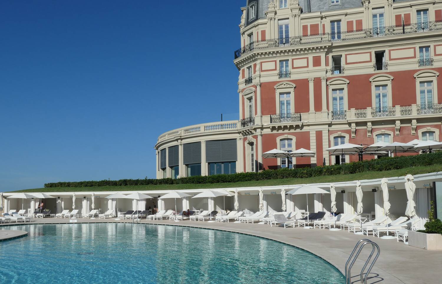 Und die Welle rollt: Wr sich ein paar Tage im "Hotel du Palais" geleistet hat, der kann den Urlaubsgenuss als Surfer verlängern: Die "Philosophie des Wellenreitens" ist an den Stränden von Biarritz (traditionell bei "jüngeren Menschen") weit verbreitet - die breiten Strände und Wellen-Berge sind weltweit berühmt. Einen kleinen Eindruck vermittelt das Foto-Motiv ganz unten.