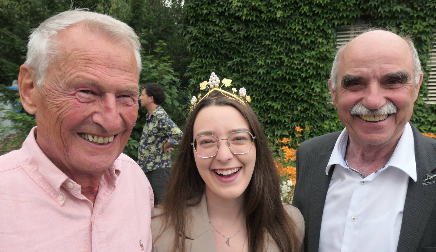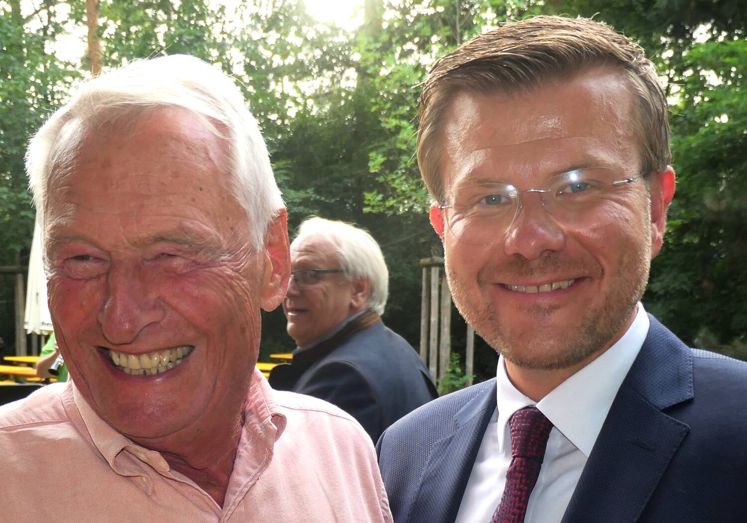 Während der Jubiläumsfeier gab es viele "Wiedersehens-Gelegenheiten": Ex-BR-Intendant Dr. Thomas Gruber plauderte entspannt mit Dr. Katja Wildermuth (Foto links) und dann mit Frankenwein-Präsident Artur Steinmann und der fränkischen Weinkönigin Lisa Lehritter (Foto unten links) und mit Nürnbergs Oberbürgermeister Marcus König (unten).