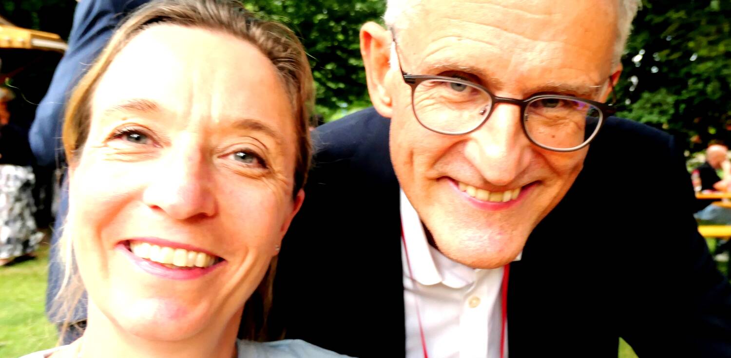 Linkes Foto: Jubliäumsgast in Nürnberg war auch Anja Miller (bisherige Leiterin des ARD-Studios Rom). Miller wird ab 1. Oktober 2024 Tassilo Forchheimer als Leiterin des BR in Franken ablösen - Tassilo Forchheimer wechselt ins BR-Management nach München.